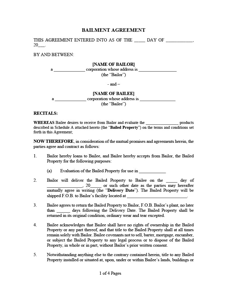 - The term of the contract will last as long as the equipment is in the possession of the bailee. The term can be extended or terminated by agreement of both parties.