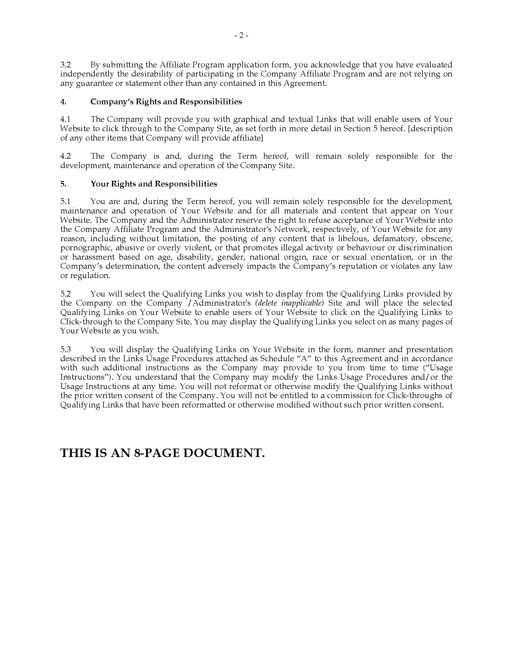 Website Affiliate Agreement | Canada