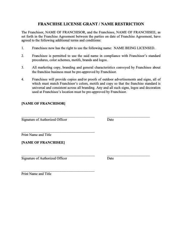 - The franchisee must comply with confidentiality and non-competition provisions both during and after the term of the agreement.