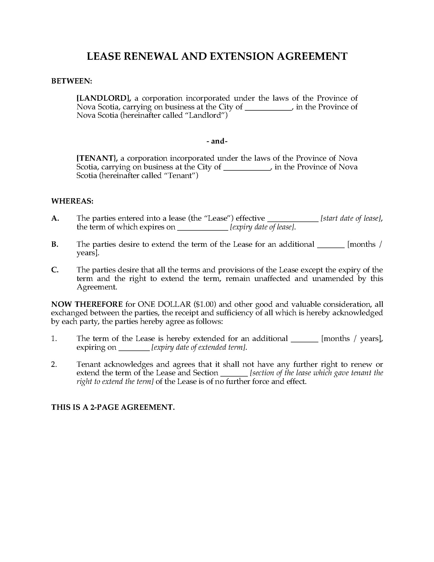 The template is intended for use only in the Province of Nova Scotia, Canada.