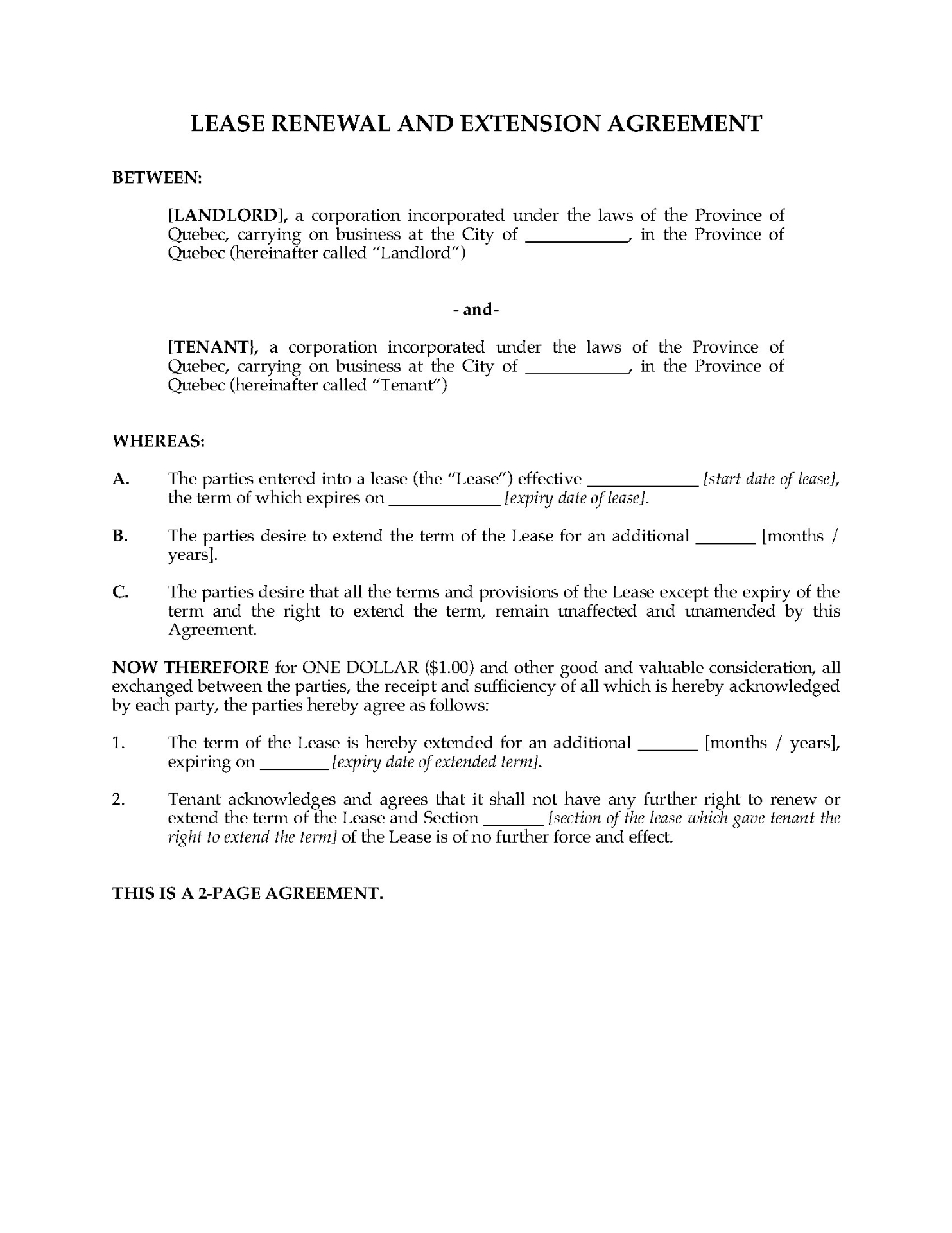 Quebec Commercial Net Net Lease Agreement
