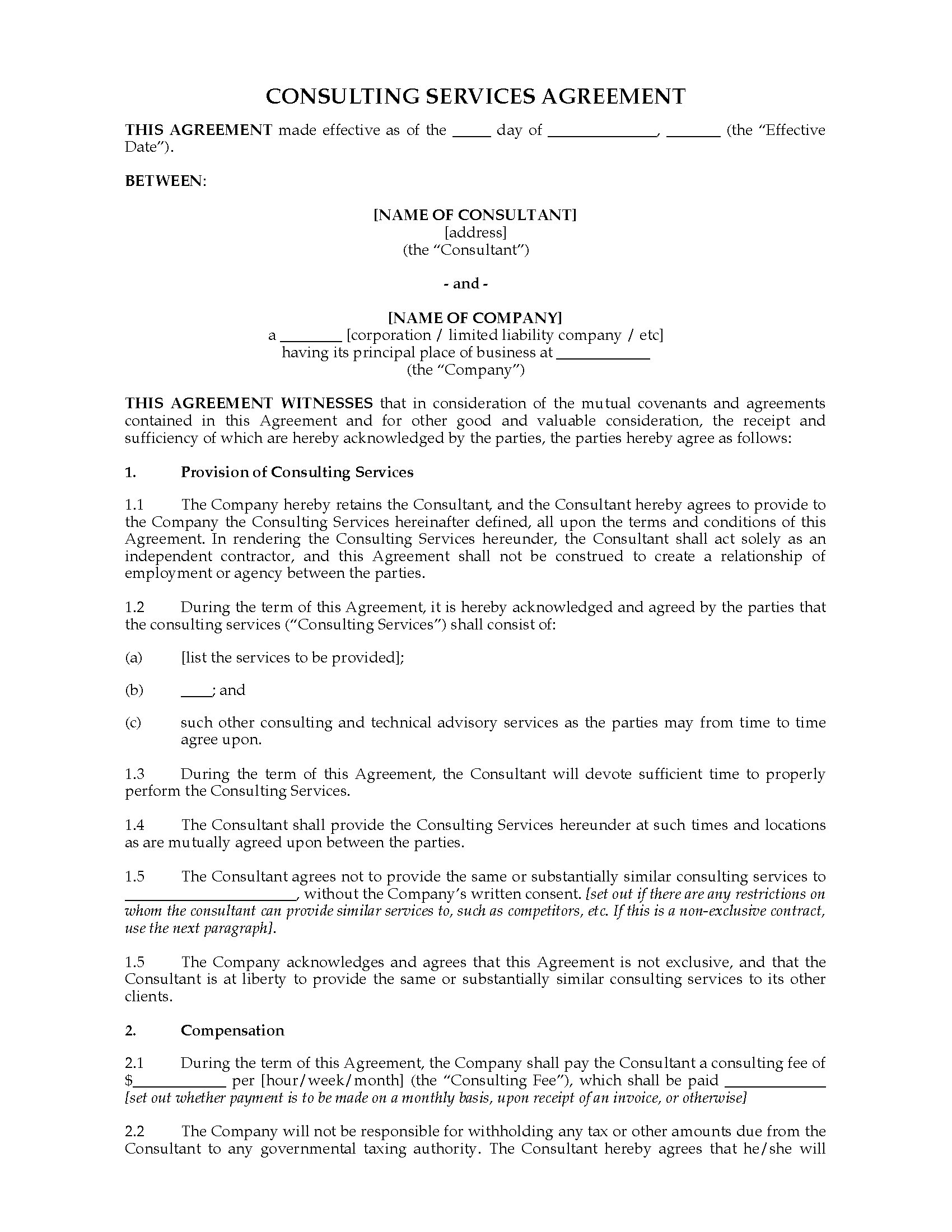 - When you have reviewed all of those issues, use this Consulting Services Agreement template to write up the contract.