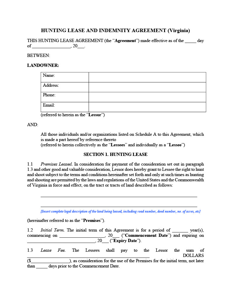 This Virginia Fishing Lease Agreement is provided in MS Word format, and can be easily edited to fit your circumstances.